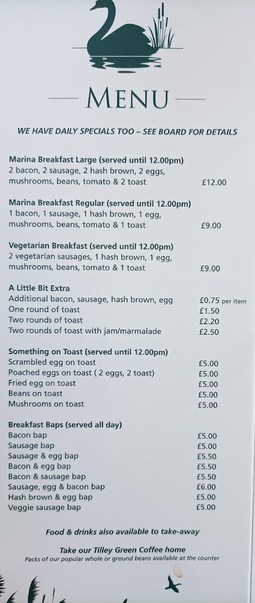 A Waterside Cafe at Whixall Marina Menu